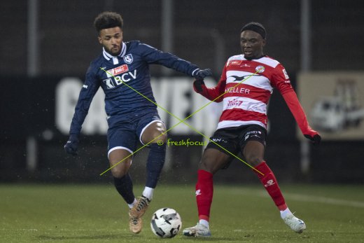 05.12.2024; Winterthur; Fussball Schweizer Cup - FC Winterthur - FC Lausanne-Sport, Morgan Poaty (Lausanne) gegen Josias Lukembila (Winterthur) (Claudio Thoma/freshfocus)