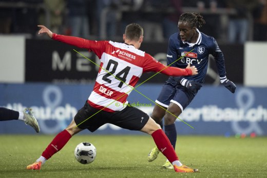 05.12.2024; Winterthur; Fussball Schweizer Cup - FC Winterthur - FC Lausanne-Sport, Silvan Sidler (Winterthur) gegen Fousseni Diabate (Lausanne) (Claudio Thoma/freshfocus)