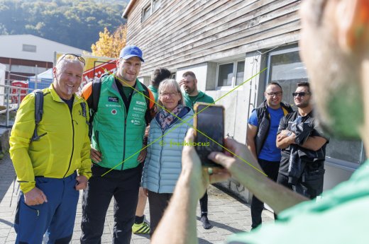 11.10.2025; Mels; Schwingen - Schwinger-Fussballturnier; Schwingerkoenig Armon Orlik gibt geduldig Autogramme und macht Selfies mit den Fans. (Sven Thomann/Blick/freshfocus)