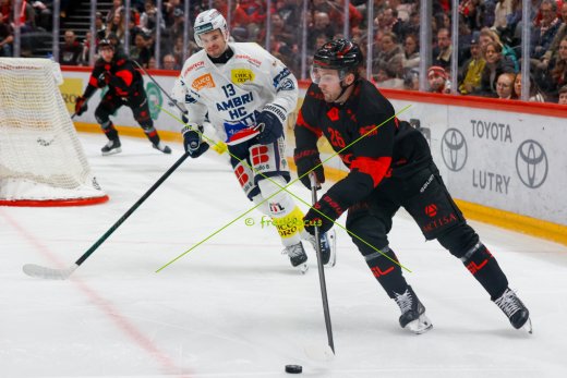 20.12.2025; Lausanne; Eishockey National League; Lausanne HC - HC Ambri-Piotta; Erik Braennstroem (Lausanne) gegen Manix Landry (Ambri) (Estelle Vagne/freshfocus) ----------------------------------------------------------